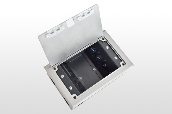 翻盖式平面斜插式,用料十足,可随意踩踏,有效保护内部模块,线缆接入可完全关闭,安全牢固,线缆管接口直径:φ25mm